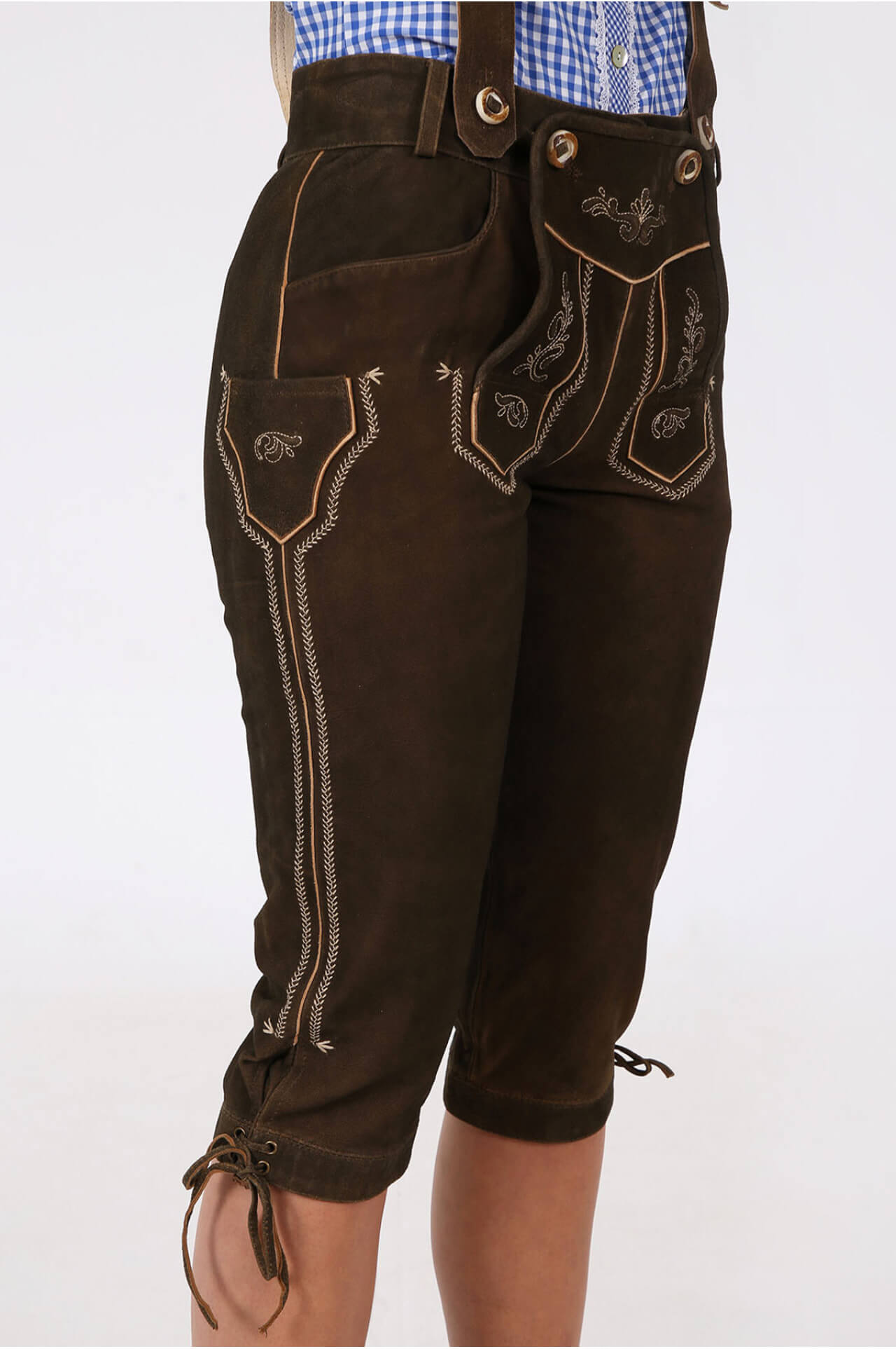 These lederhosen are a beautiful blend of tradition and style. The fit is flattering, elongating the knees and enhancing the figure. The polyester lining adds comfort, and the quality craftsmanship is evident in every stitch.