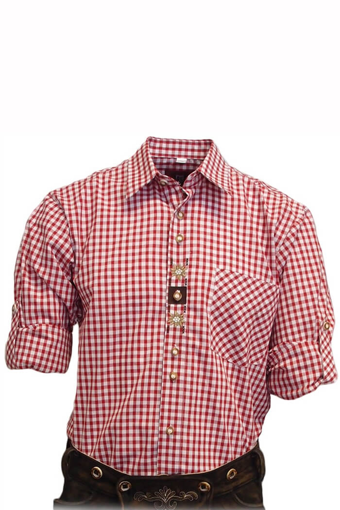 This shirt features a vibrant red and white checkered pattern, a traditional color scheme that complements Lederhosen suspenders beautifully. Made from premium-quality cotton, it provides breathability and softness, making it ideal for all-day wear at festivals and beer gardens.