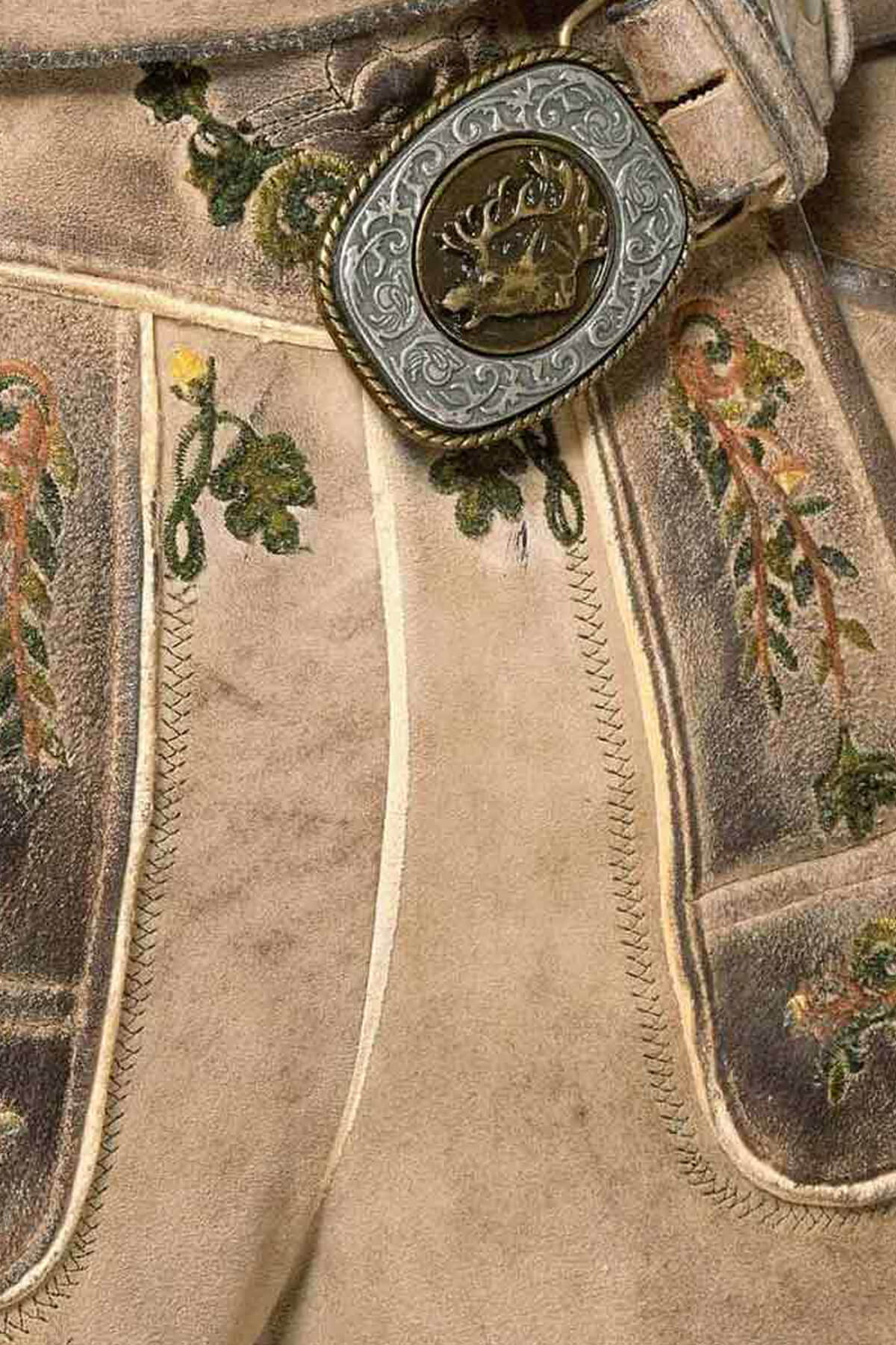 There are also pretty stitches around the edges of the pants and pockets that make them look even nicer. They help the pants keep their shape and make them look more interesting. The belt that comes with the pants has a fancy buckle and matches the Bavarian lederhosen perfectly. It shows how much care and skill goes into making each pair of Oliver Lederhosen – they’re not just pants, they’re like little works of art.