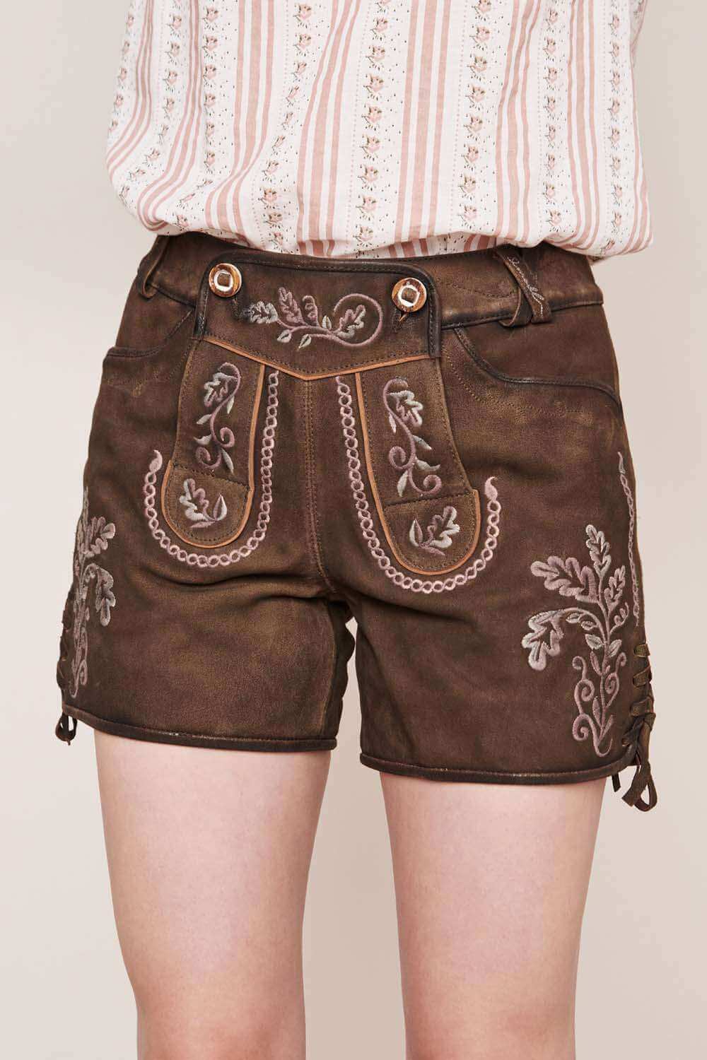 These lederhosen are made from fantastic quality suede leather. The embroidery is stunning, and they are so comfortable. I wore them to a festival, and they were perfect!